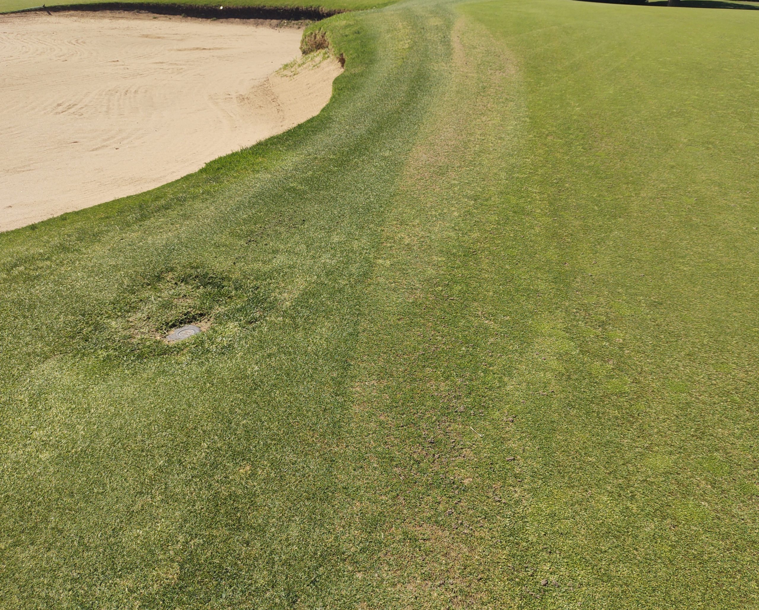 Si bien, por lo general, el césped cercano a los bordes de bunkers se encuentra más débil por la acumulación de suelo arenoso y carente de materia orgánica que sale de los bunkers (ello va ocurriendo en el mediano a largo plazo con el correr del tiempo), no siempre este es el motivo principal para este daño.