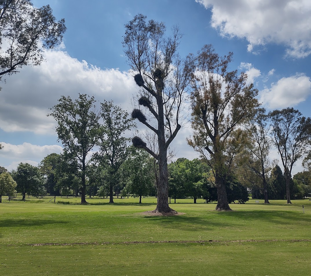 En el cono sur (y en varias regiones de Latinoamérica), las cotorras también, al igual que los carpinchos, se sienten muy a gusto tomando a los campos de golf como hogar y hábitat para desarrollar sus vidas. Las cotorras se muestran tan prolíficas y tan presentes que no dejan de sorprendernos. Tal es el caso de esta foto, en la cual se observa un árbol que tuvo que ser podado por temas de seguridad, y en el cual las cotorras volvieron a construir sus nidos antes de que las nuevas ramas volvieran a crecer. Es sorprendente la velocidad con que construyen nidos, y ya se ha convertido en una música frecuente el chirrido estridente de su canto cuando caminamos por los fairways.
