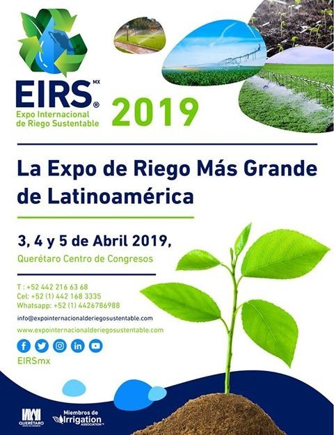 La Expo Internacional de Riego Sustentable tiene como objetivo la exhibición de tecnología y servicios que procuren el aprovechamiento de los recursos hídricos a fin de promover y mantener los procesos productivos sustentables en el país. La Segunda edición se llevará a cabo del 3 al 5 de Abril del 2019 en el Centro de Congresos del Estado de Querétaro, México.