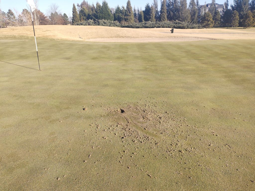 Daño de mulitas en busca de gusanos blancos (Cañuelas GC).