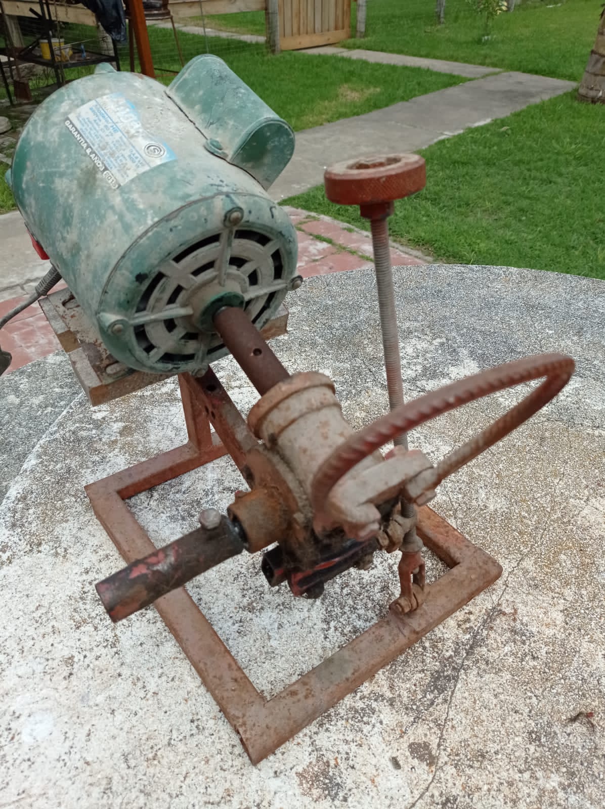 Afilador de máquinas helicoidales construido con un motor de lavarropas y sistema cardánico.