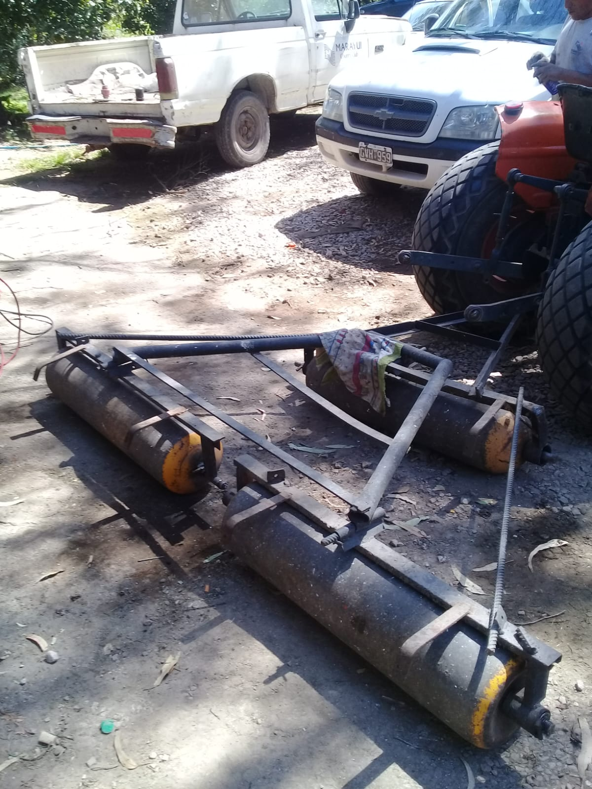 Rolo para greens armado con una cortadora de greens manual a la cual se le cambió el reel de corte por el rodillo.