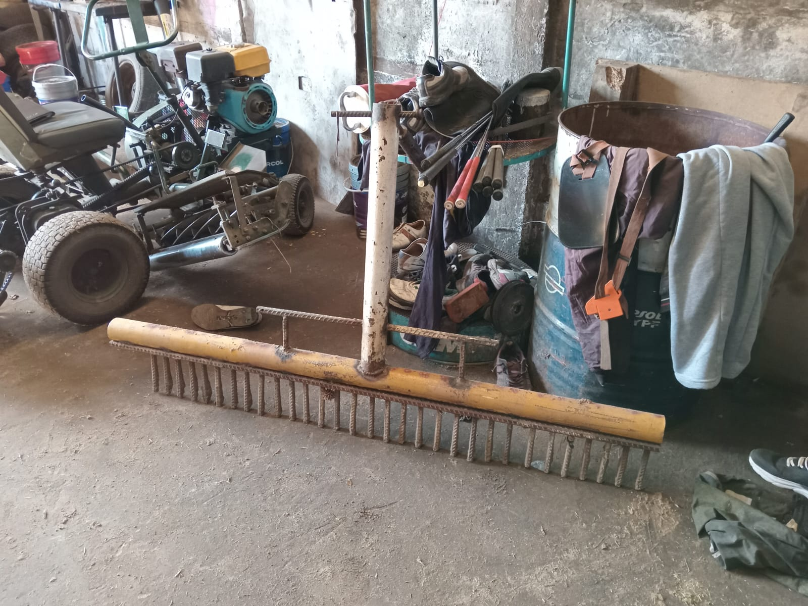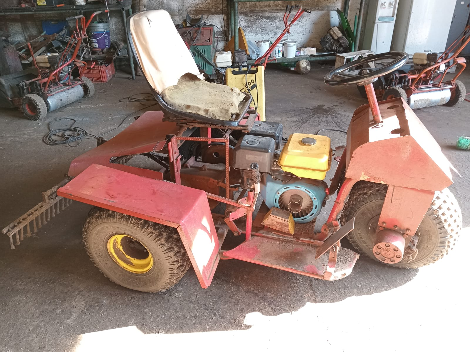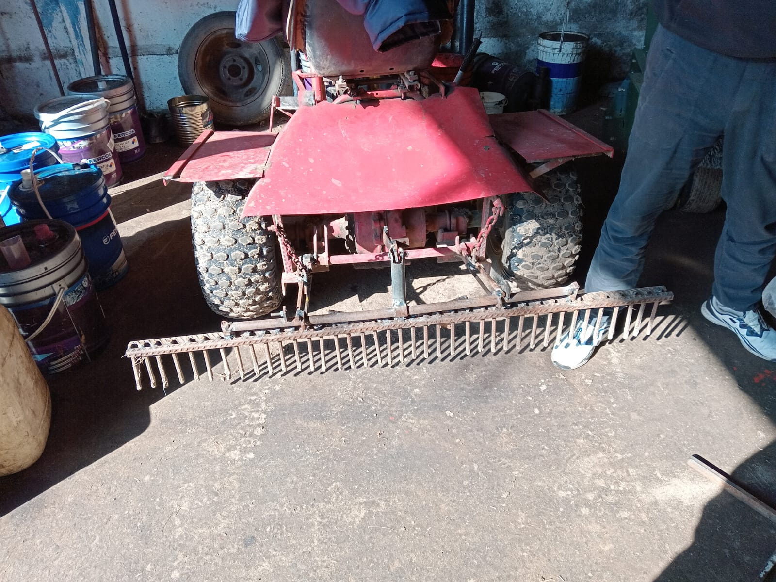 Rastrilladora de bunkers reciclada a sistema cardánico mecánico, sin sistema hidráulico.