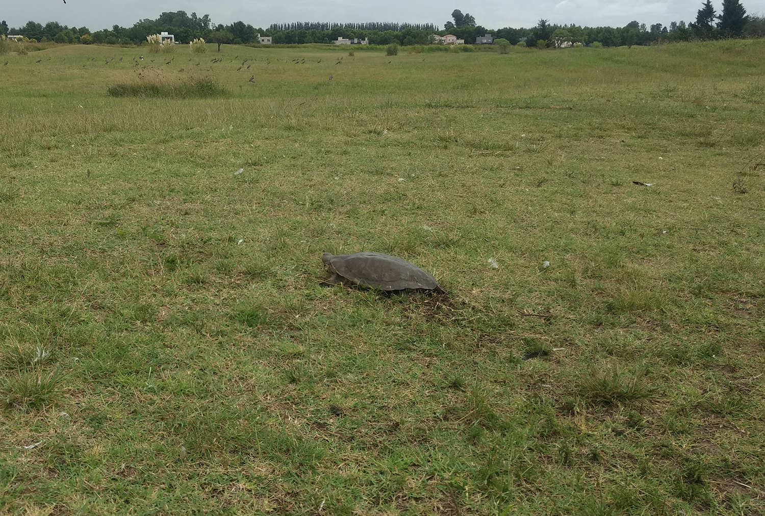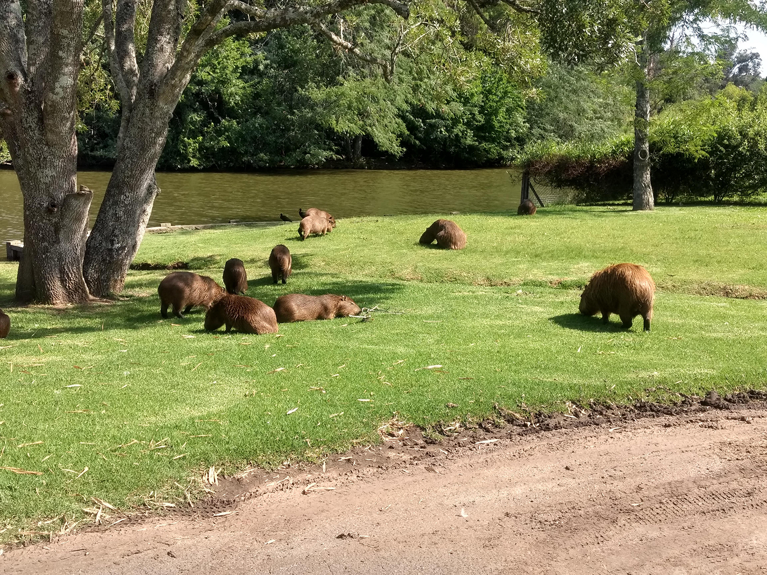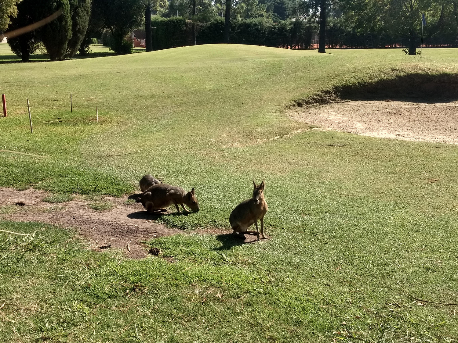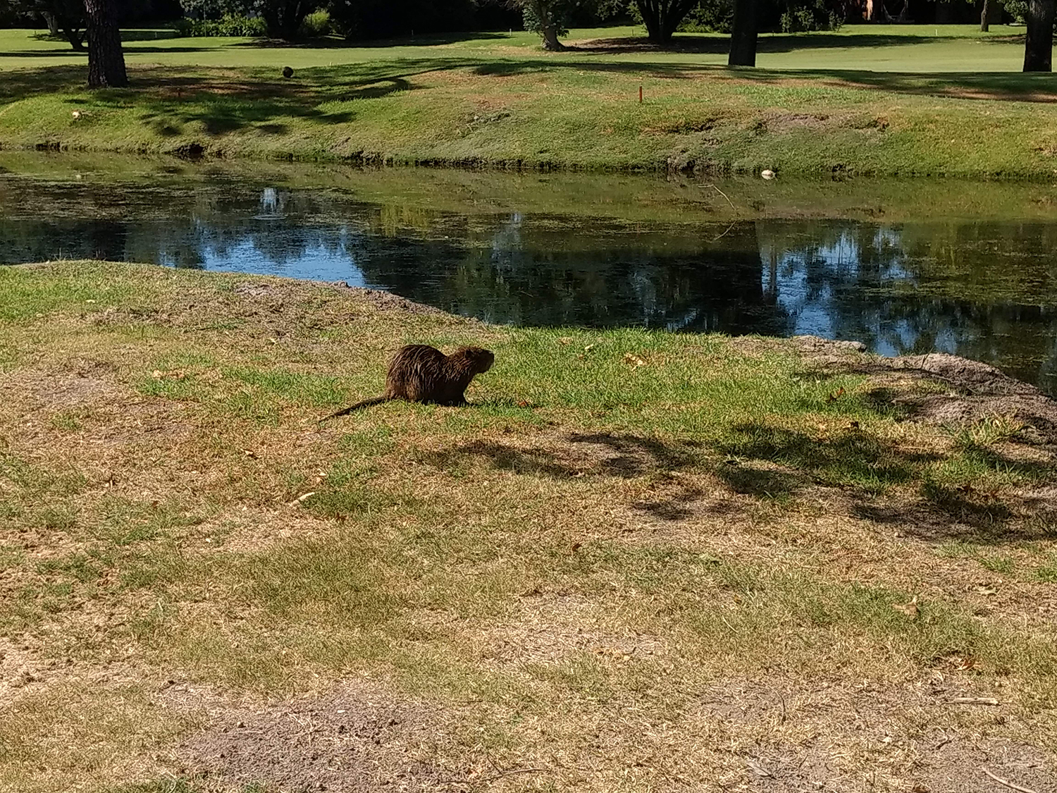 Familia de carpinchos al borde del hoyo 17. Abril CC.