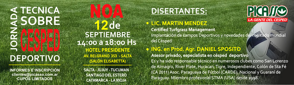 Picasso: Jornada técnica sobre césped deportivo 30 agosto, 2017 Written by TGM Digital Published in Campos deportivos 1 Comment Permalink Tagged under: cursos jornadas Picasso