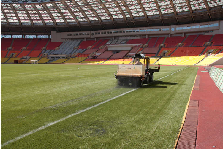 El estadio Luzhniki (inaugurado en 1956), fue renovado en el 2013 para el Mundial de Fútbol 2018,lo primero fue retirar el césped artificial y se lo reemplazó con pasto natural. Luzhniki es un campo híbrido, compuesto por 95% de césped natural y 5% de hilo (SIS-Grass). En 2015 fue sembrado con Rye Grass y se aplicó los hilados híbridos.