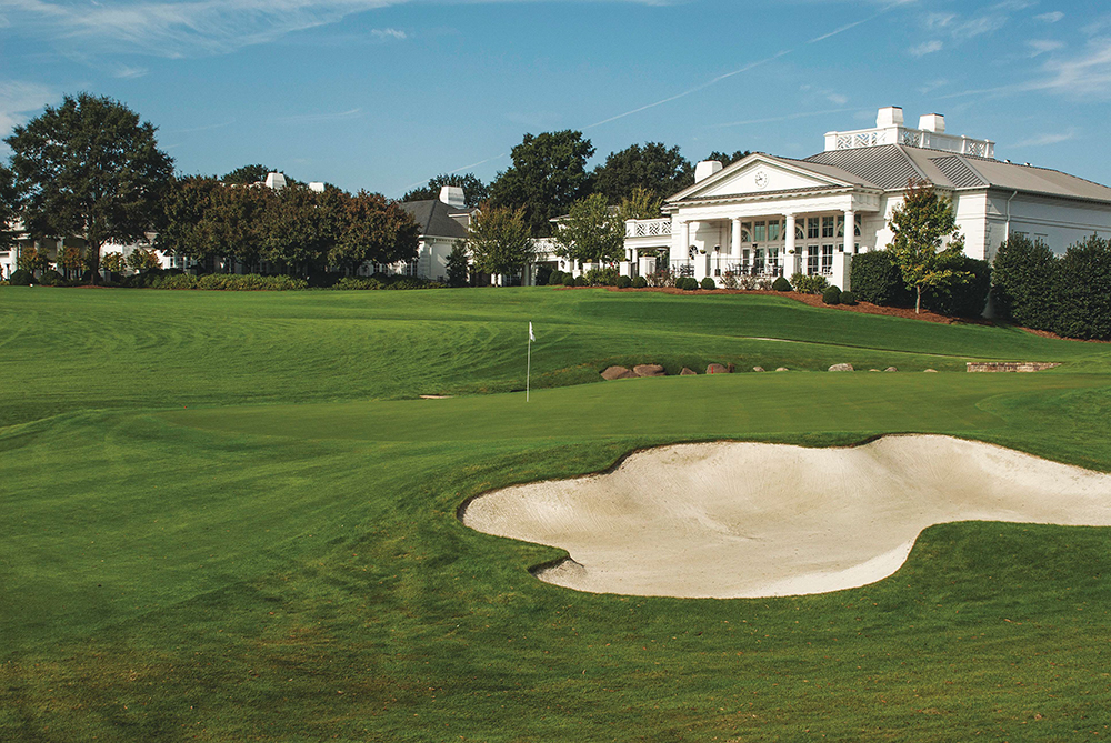 La cancha de 18 hoyos en Quail Hollow Club en Charlotte, N.C., fue diseñada por George Cobb en 1961 para capturar ambos la belleza y el desafiante terreno de la región de Piedmont plateau, localizada entre la Planicie Atlántica Costal y los Montes Apalaches.