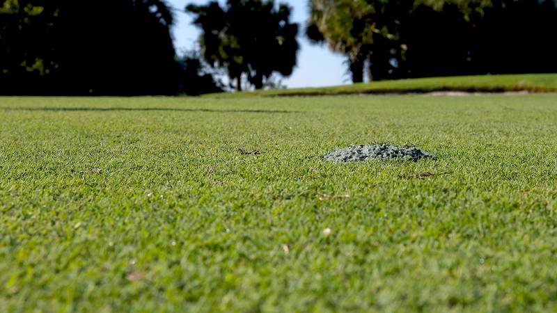 Al usar la mezcla para divots, es importante evitar rellenarlos en exceso o insuficientemente. No llenar los divots totalmente resultará en una depresión, que afectará dónde y cómo la pelota descansará en el césped. Por otra parte, un divot rellenado en exceso dañará las máquinas de corte, y creará malas condiciones de juego. Para rellenar un divot correctamente, agáchese, y coloque directamente la mezcla para divots en cada uno, asegurando no esparcir la mezcla en el césped próximo que no está dañado. Adicione la mezcla para divots hasta que se vea uniforme con la base del césped circundante. Finalmente, al igual que cuando reemplaza los divots, utilice su pie para compactar y nivelar la mezcla. Esto proveerá un mejor contacto entre el suelo y las semillas, lo que fomentará la germinación y supervivencia de las pequeñas plantitas. El video de Course Care de la USGA, Divot Repair Etiquette, muestra los puntos básicos de la reparación de divots para ambos céspedes, de clima cálido y frío. Asegúrese de confirmar con el profesional de su club antes de elegir el método preferido de reparación de divots en su cancha. Y recuerde: entre rellenar o no rellenar, no hay cuestión en discusión.