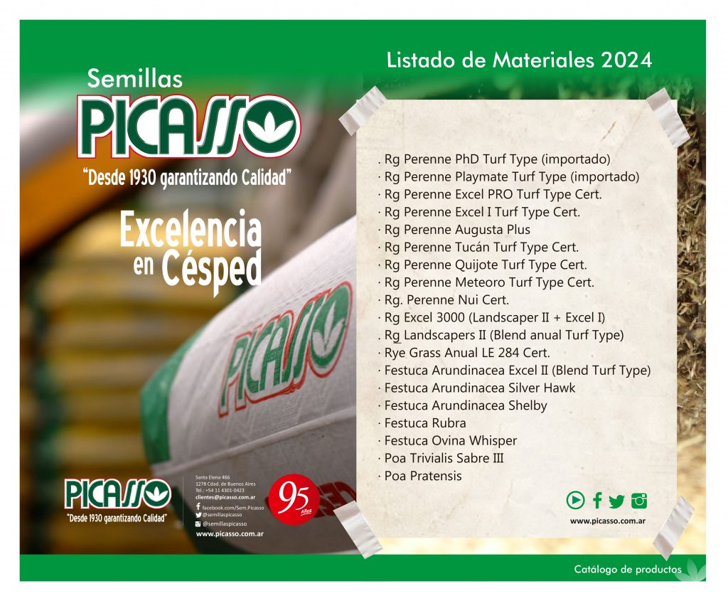 Semillas Picasso presenta las variedades que ofrece para esta resiembra 2024. Entre ellas se destacan los diferentes ryegrasses anuales y perennes, festucas y poas. Todas ellas con genética nacional e importada.