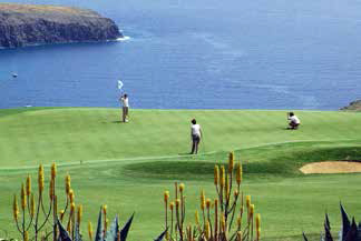 El green del hoyo 10 en el campo Donald´s Gomera en las Islas Canarias