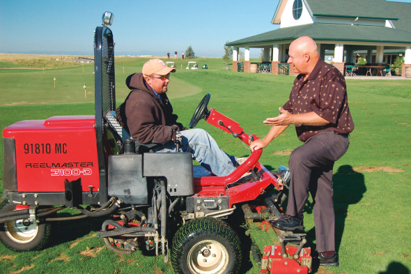 El comportamiento de un líder: mantenerse positivo con el staff, más allá de decisiones derivadas de mantenimiento, con las que el superintendente puede estar en desacuerdo, es una entre las cualidades que el ex presidente de la GCSAA Dennis Lyon, CGCS (derecha), ve en un superintendente exitoso.