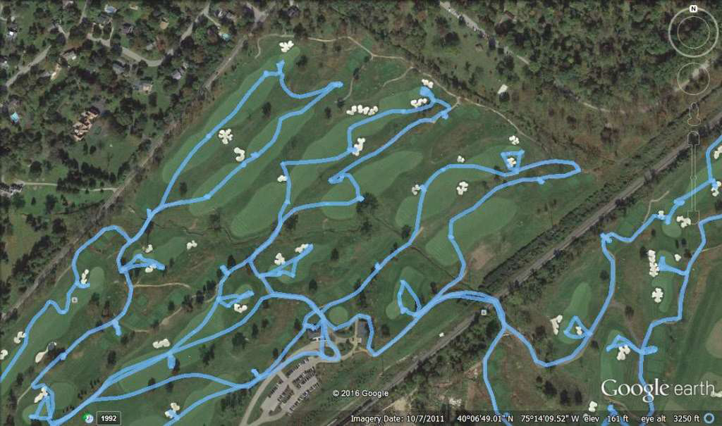 A cada golfista que jugó en un día en el que el estudio estaba siendo llevado a cabo se le fue pedido que participe llevando un GPS en su bolsillo por la duración de la vuelta. Cada cinco segundos, el GPS registró su velocidad y ubicación, permitiendo a los investigadores observar cuánto tiempo el jugador permaneció en un green y cuánto el jugador interactuó con el green. El GPS no transmitió información en tiempo real, y la misma no estuvo conectada a ningún individuo particular. Luego de ser recolectada, la información es usada para generar el camino tomado por un golfista en la cancha (demostrado en la imagen de la izquierda), lo que ilustra dónde un golfista estuvo y cuánto tiempo le tomó al mismo jugar cada hoyo. Los investigadores también pueden analizar los recorridos de los golfistas en diferentes velocidades de green.
