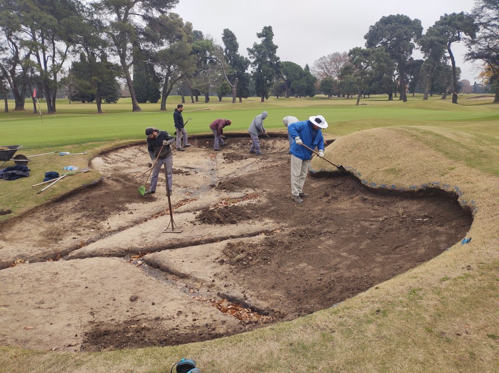 El Arq. DeVries capacitó al personal del Jockey Club y trabajó a su lado en la reconstrucción de un bunker.